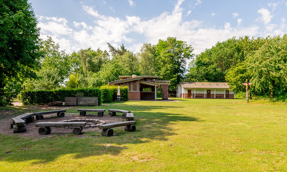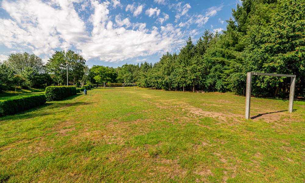 Darüber hinaus gibt es verschiedene Sportanlagen, z. B. ein Volleyballfeld, ein Beachvolleyballfeld, einen Bolzplatz und einen Streetballplatz. Die großzügigen Rasenflächen laden zum Spielen und Verweilen ein. Da macht der Sommer Spaß!